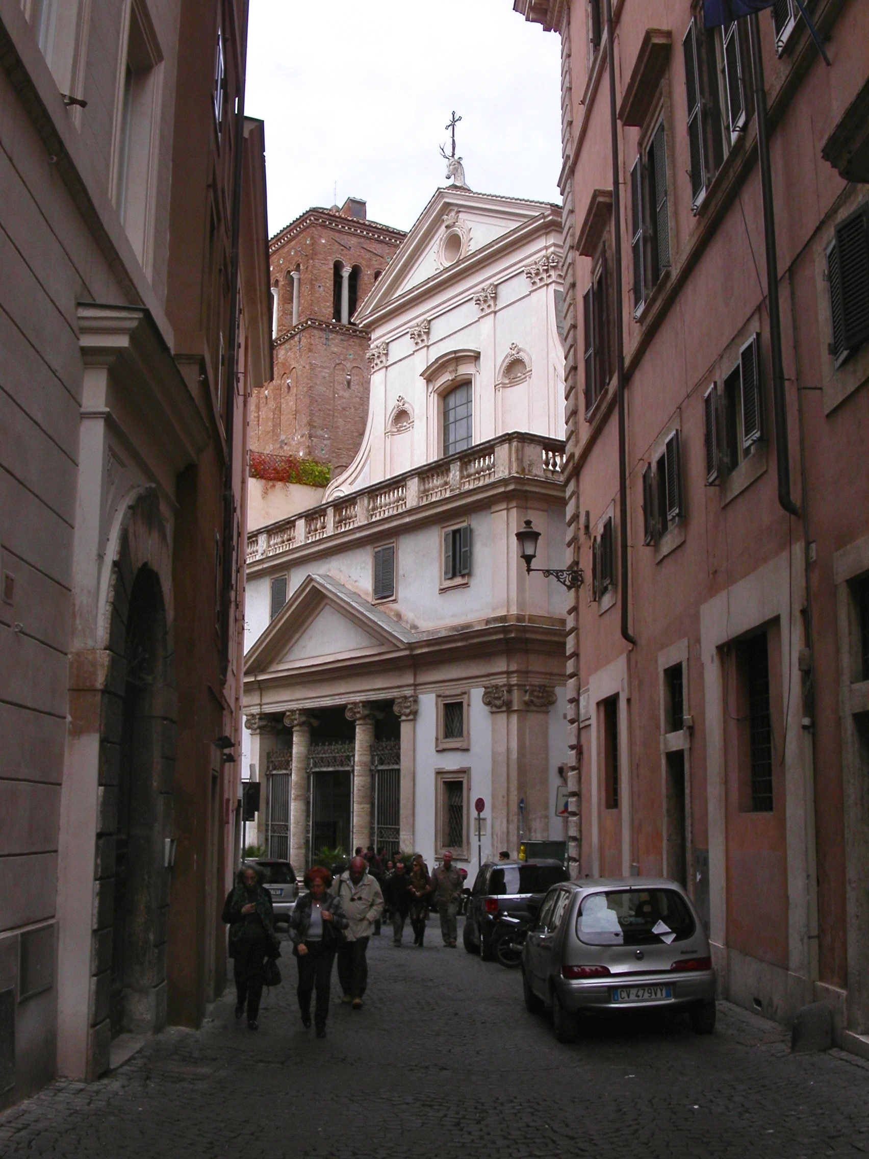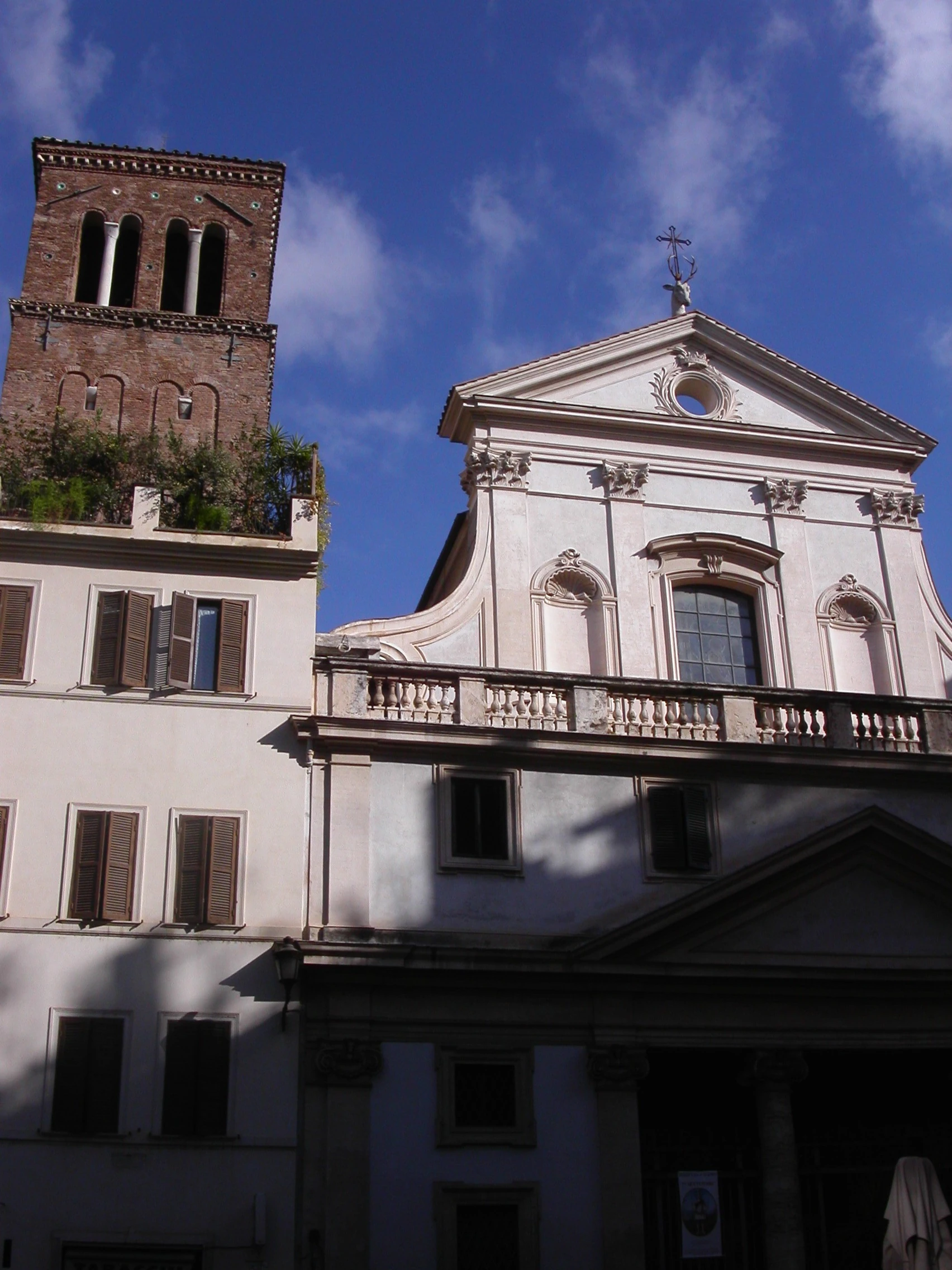 The early history of the church is unknown, and the first documentary reference dates to the reign of Pope Gregory II (715-31). By then, it was already a diaconia or a centre of the Church's charitable activities on behalf of poor people. So, it appears feasible that the church was founded when the flood-plain of the river meander (occupied in ancient times by the Campus Martius) was colonized by refugees from the hills. When the aqueducts ceased to function, these people would have had to move in order to be near a source of water -even if it meant that they were regularly flooded out. (In ancient Rome the area had a low residential population, and was largely occupied by ceremonial and public buildings.)