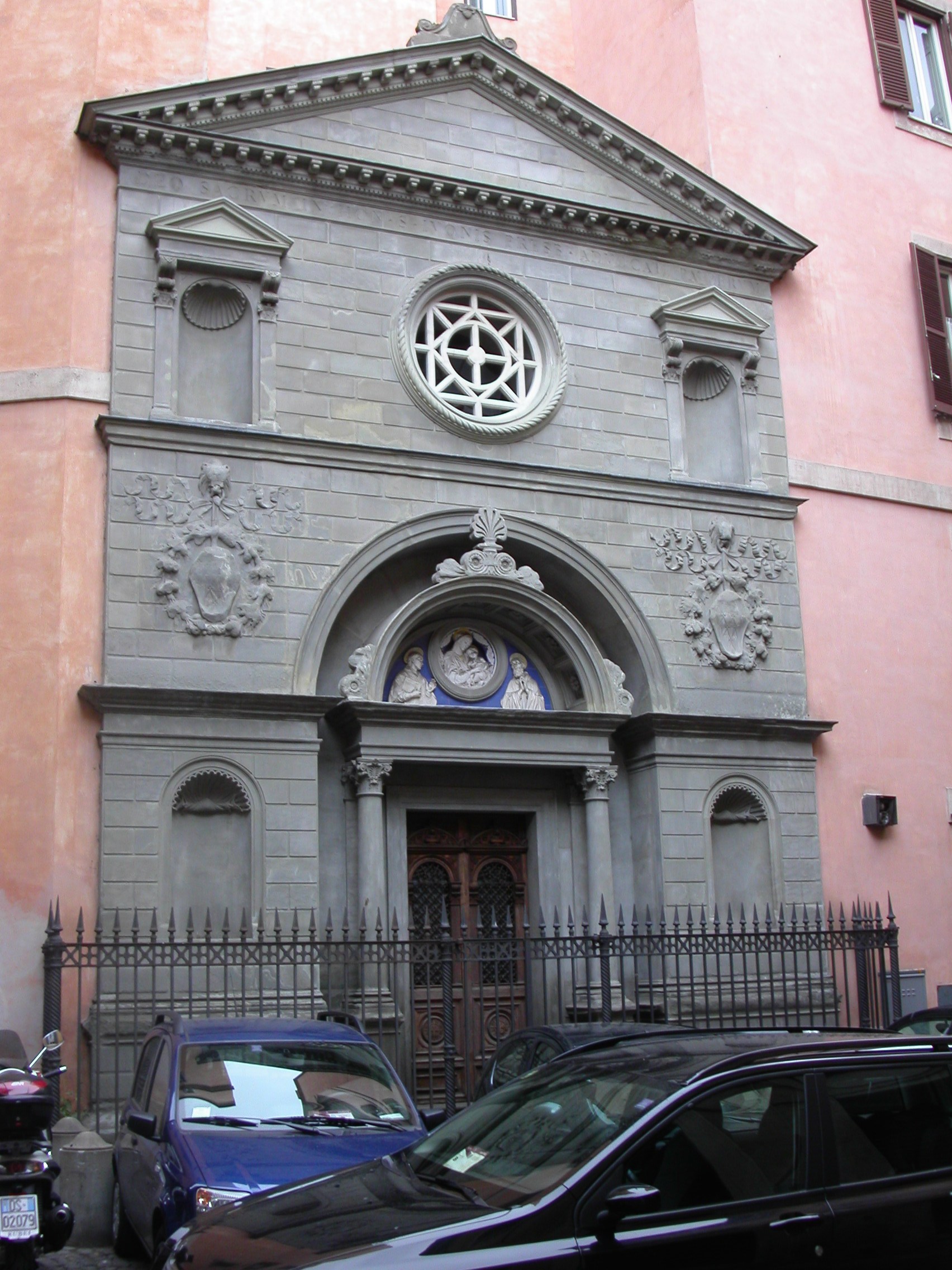 The frontage of Via della Scrofa 11 dates back to the time when it was part of the hospice. High up on the façade is a small plaque displaying the heraldic shield of Brittany. A similar device is now in the cloister at San Luigi.