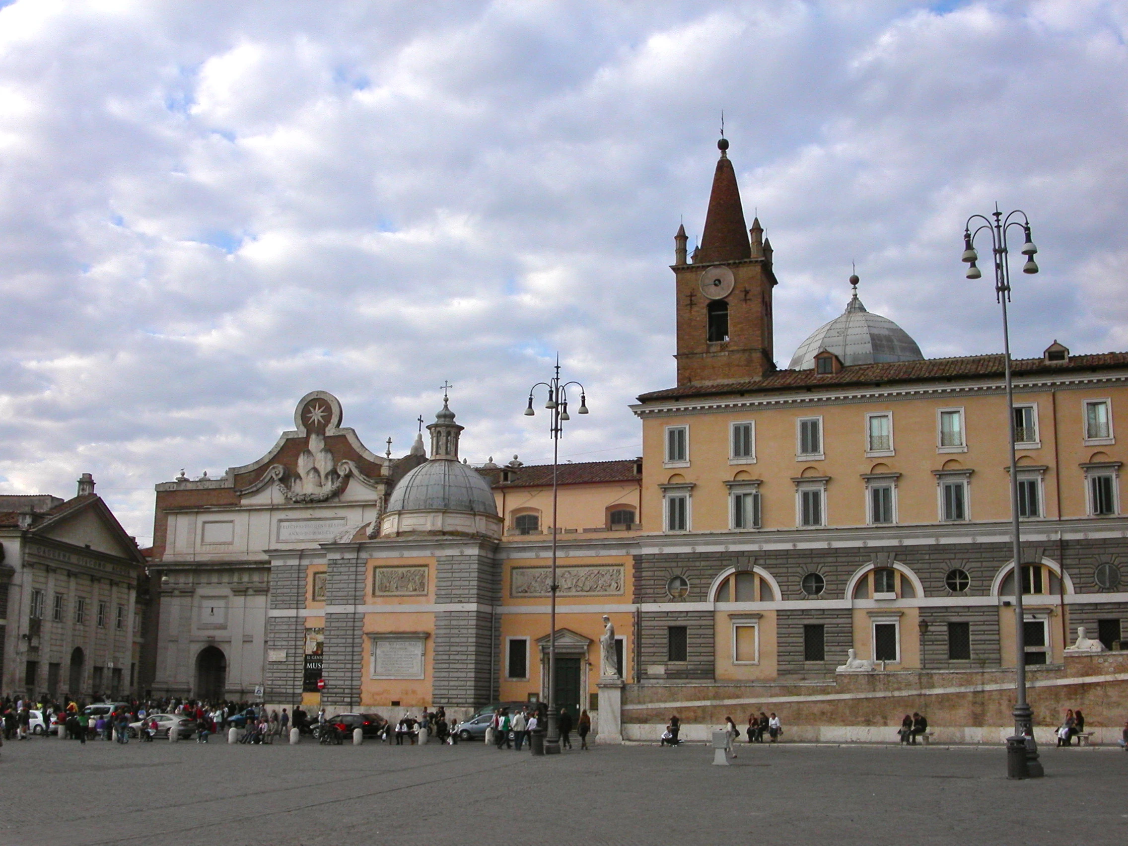 Santa Maria del Popolo is a a minor basilica, a 15th century parish, titular and convent church on the north side of the Piazza del Popolo (at number 12) in the rione Campo Marzio. It is located right next to the Porta del Popolo. Pictures of the church on Wikimedia Commons are here. There is an English Wikipedia page here.