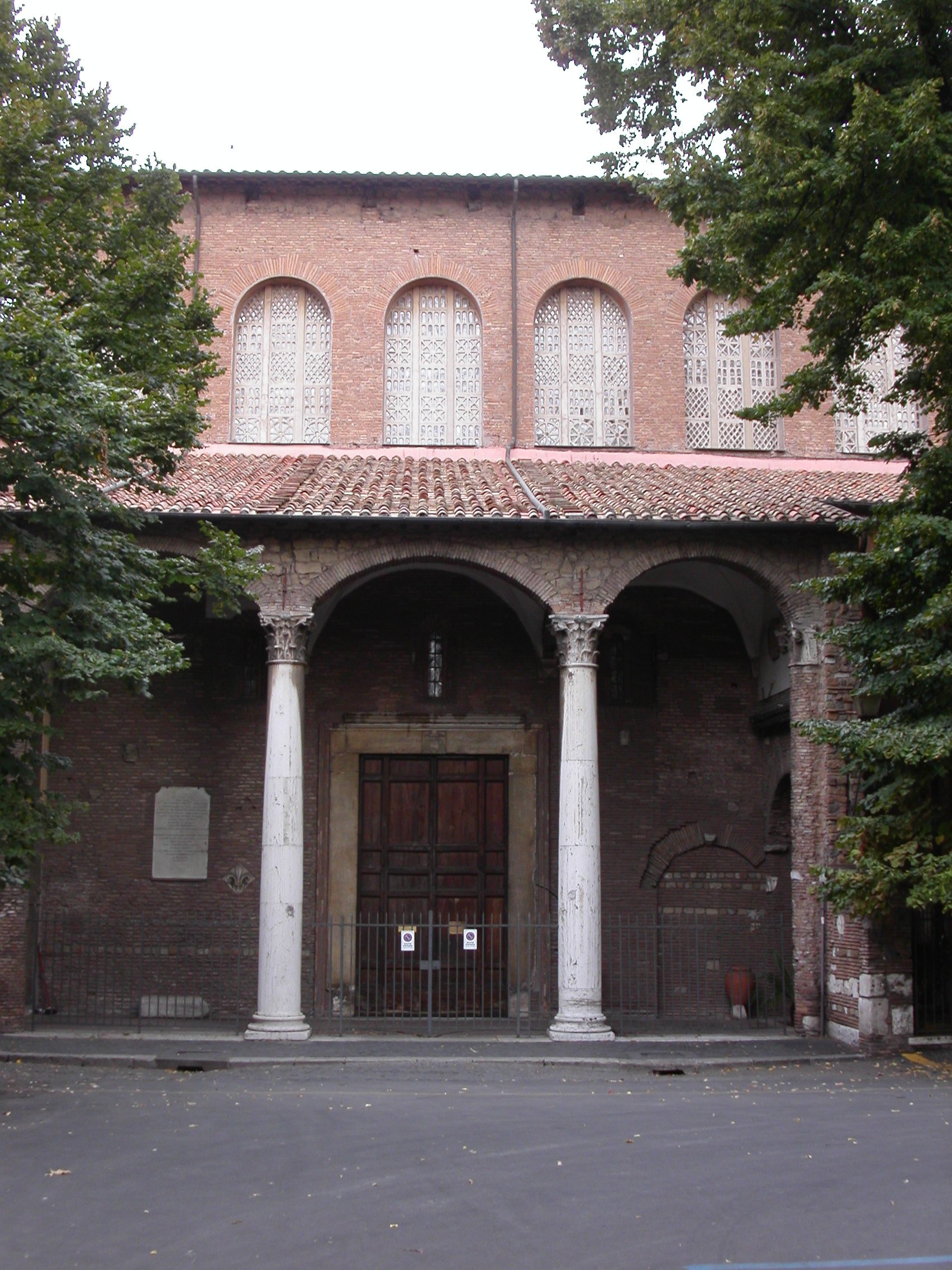 The church looks much from the outside as it did when it was built in the 5th century and is a classic aisled basilica without a separate sanctuary bay or transept. The alignment is south-west to north-east, and there is a piazza between it and the street running parallel to the south. This piazza is named Piazza Pietro d'Illiria after the original founder. The street (Via di Santa Sabina) runs parallel to the church's major axis, which hints that the church respected the original ancient street plan when it was first built. The large external apse is prominent; it is only slightly lower and narrower than the main nave.