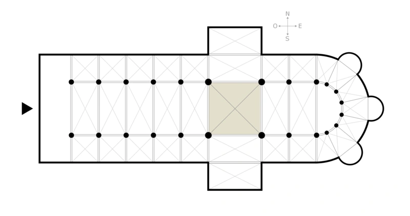 A transept shown on a typical cathedral plan